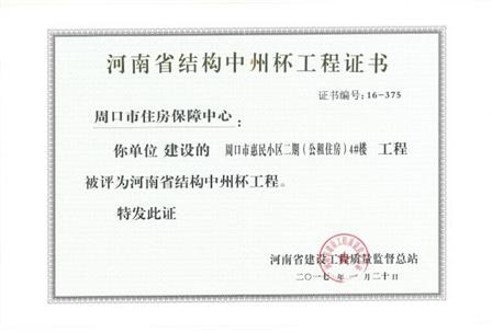 天丰建筑集团项目荣获河南省建筑