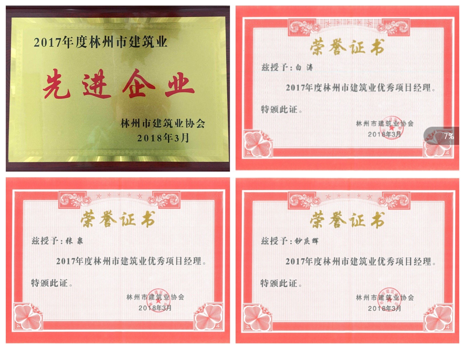 恭贺我司被评为“2017年度林州市建筑业先进企业”,项目经理白涛等三人被评为“2017年度林州市建筑业优秀项目经理”